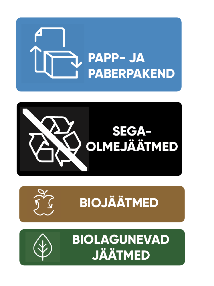 biojäätmed, biolagunevad jäätmed, papp- ja paberpakend, segaolmejäätmed